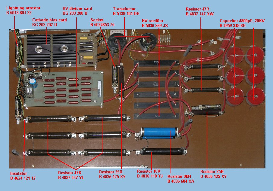 - A circuit diagram showing the high voltage control sections, this includes the HV regulator board and the Cathode bias board.