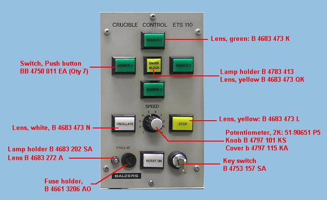 - The ETS110 crucible control unit (this has several corrections to the original Balzers circuit)