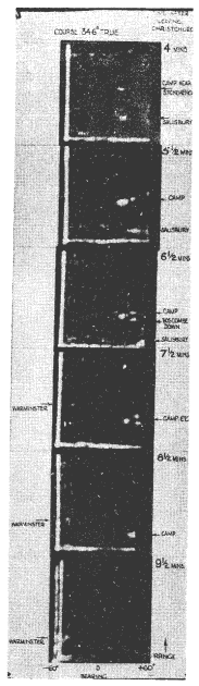 Figure 1. - Some of the first H2S responses obtained with Blenheim V6000 from 7000' altitude. Note that presentation is range-azimuth. |
