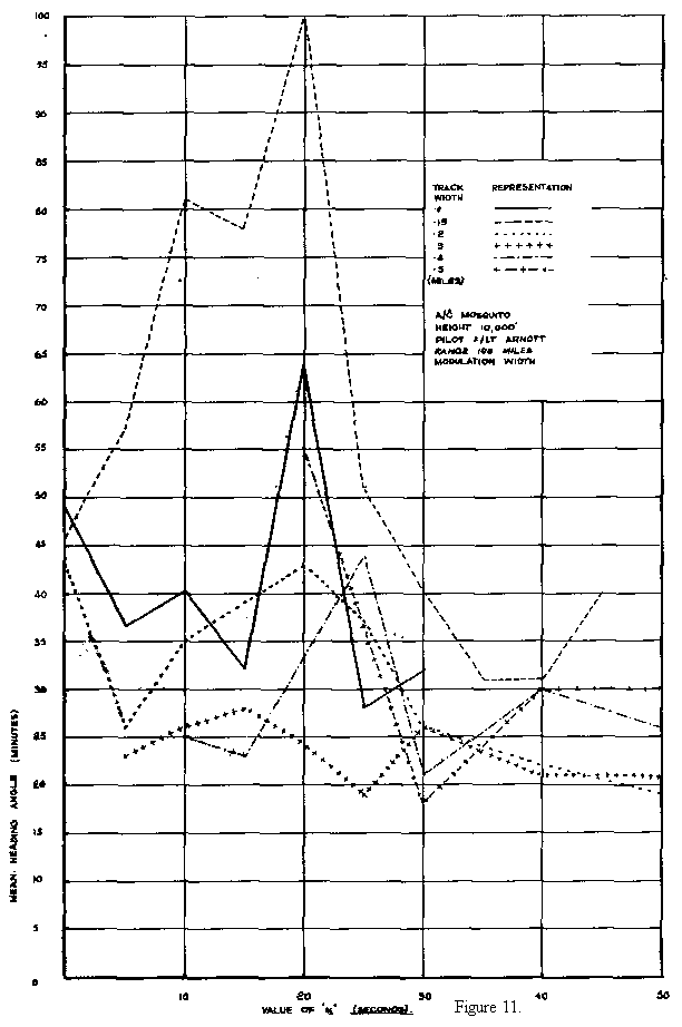 Experiments were conducted using a single Oboe Cat station and a Mosquito aircraft, and track records of the flying performances of the pilots were made using different track widths and different values of k, the rate aiding time constant.