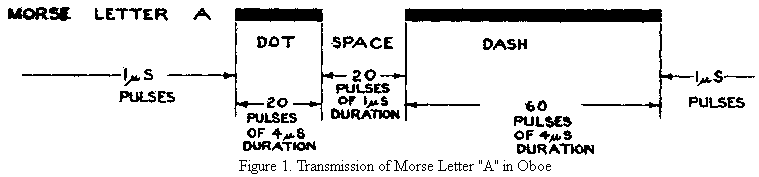 Fig. 1 illustrates how the Morse letter A (dot-dash) would be transmitted by this system.