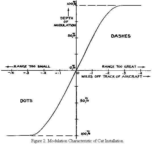 Fig. 2 shows a typical modulation curve for a Cat installation when used for circular tracking. Percentage of modulation, as defined above, is plotted against distance of the aircraft off-track.
