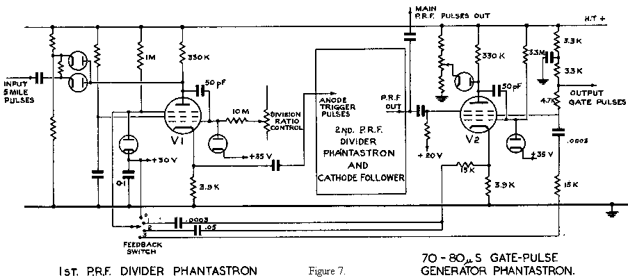 The pentode, V2, shown, is that of the gate pulse generating phantastron described earlier and concerned with the gating of the first 5 mile pulse after each main P.R.F. pulse.