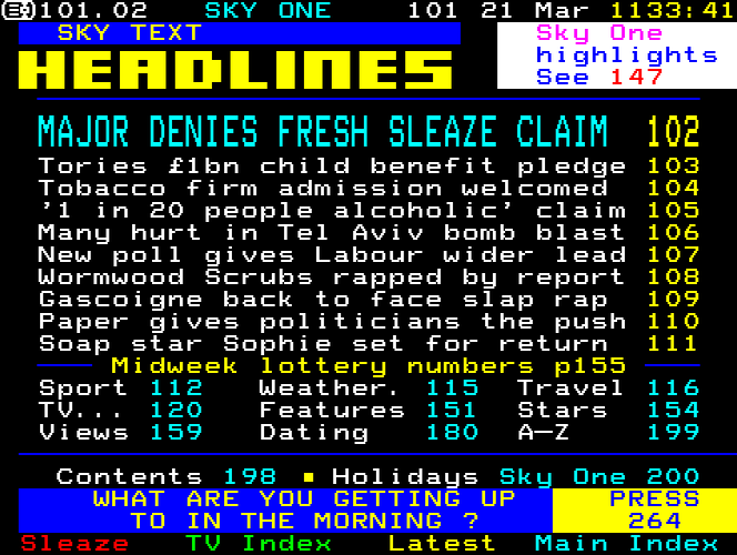 Sky One Teletext pages from 1997