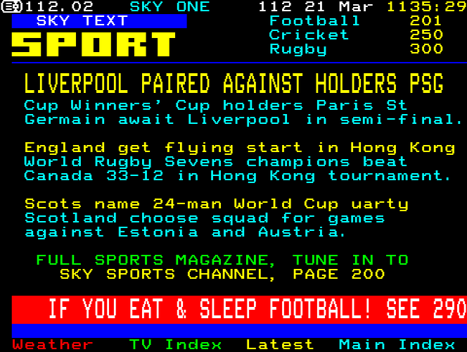 Sky One Teletext pages from 1997