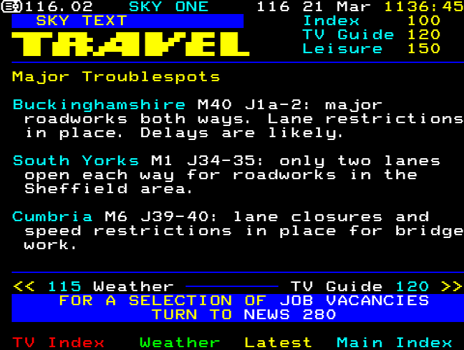 Sky One Teletext pages from 1997