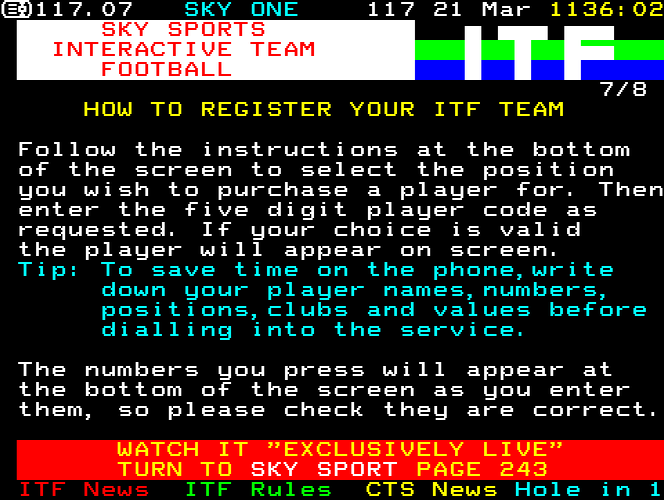 I tried to contact Sky to get permission to use these pages but they don't want to be contacted! I'll wait for them to contact me.