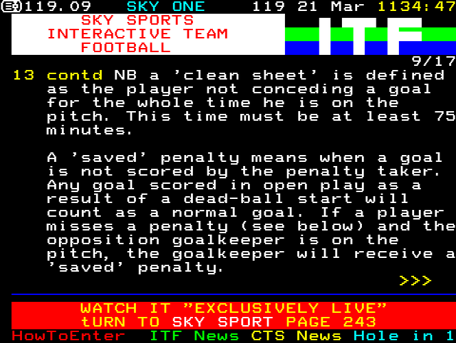 I tried to contact Sky to get permission to use these pages but they don't want to be contacted! I'll wait for them to contact me.