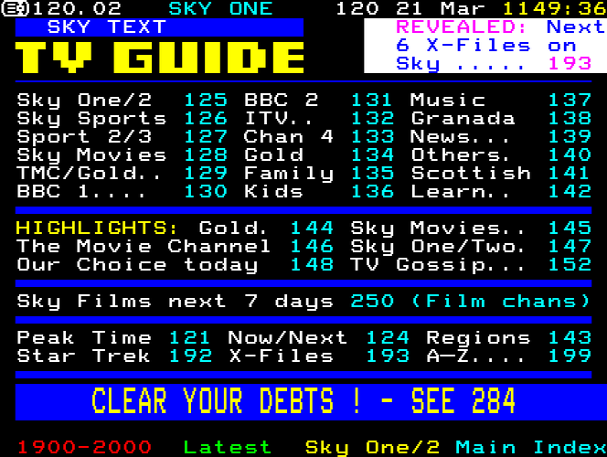I tried to contact Sky to get permission to use these pages but they don't want to be contacted! I'll wait for them to contact me.