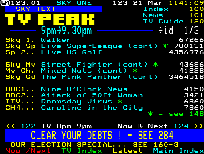 I tried to contact Sky to get permission to use these pages but they don't want to be contacted! I'll wait for them to contact me.