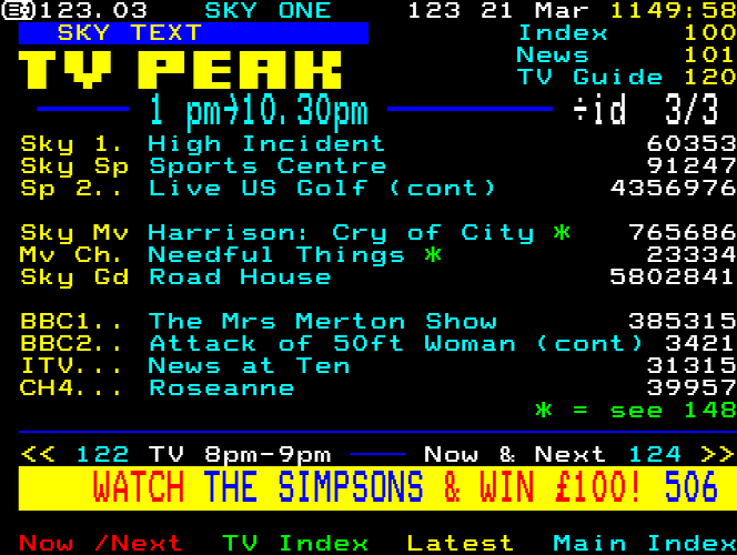 Sky One Teletext pages from 1997