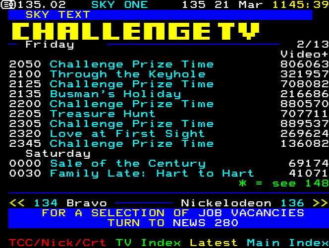 Sky One Teletext pages from 1997