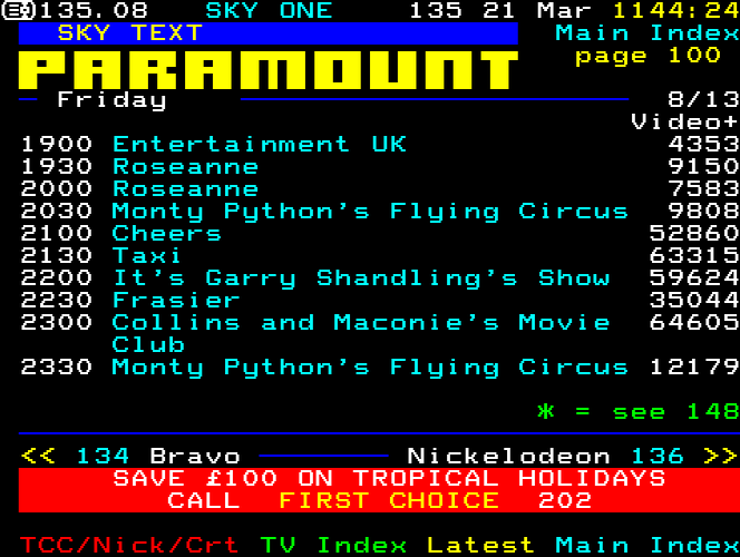 Sky One Teletext pages from 1997