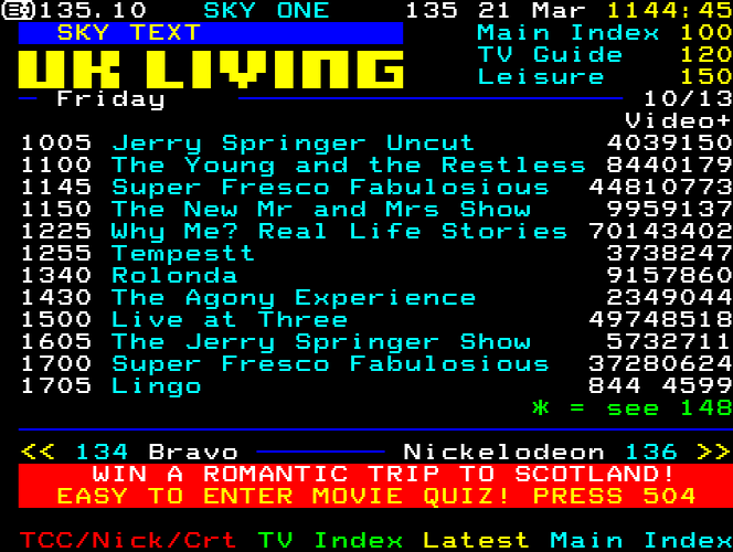 I tried to contact Sky to get permission to use these pages but they don't want to be contacted! I'll wait for them to contact me.