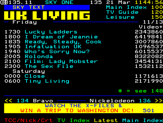 Sky One Teletext pages from 1997