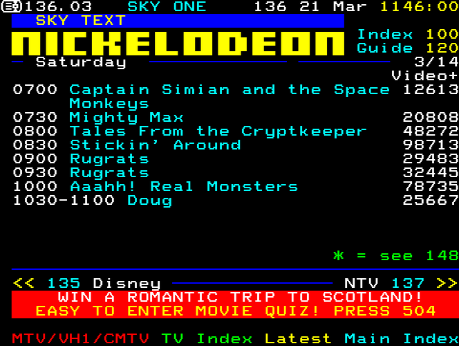 Sky One Teletext pages from 1997