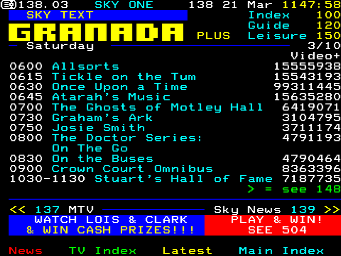 Sky One Teletext pages from 1997