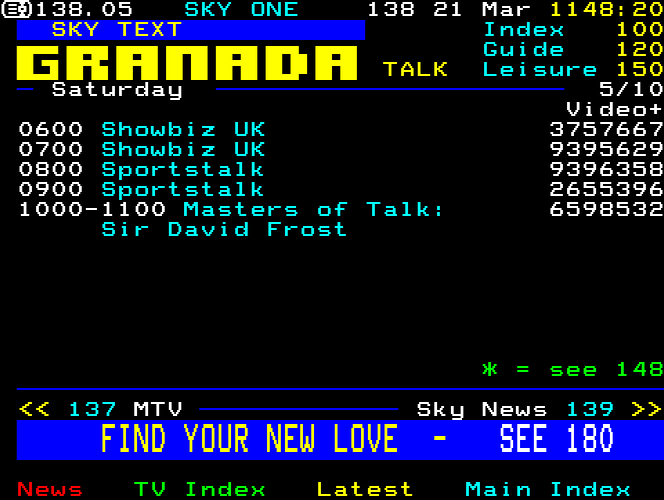 Sky One Teletext pages from 1997