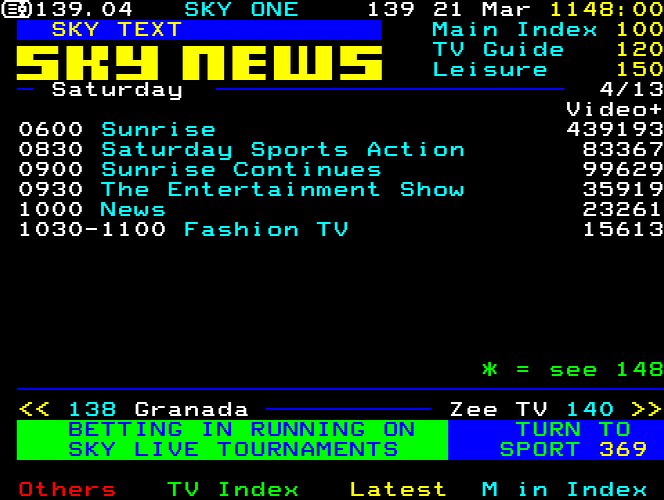 Sky One Teletext pages from 1997