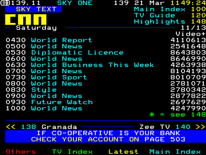 Sky One Teletext pages from 1997