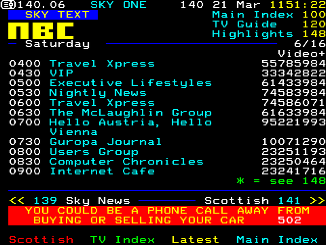 Sky One Teletext pages from 1997