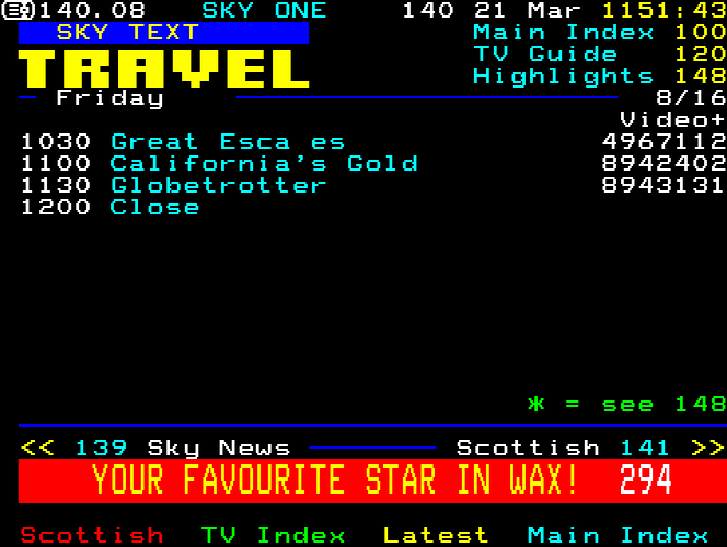 I tried to contact Sky to get permission to use these pages but they don't want to be contacted! I'll wait for them to contact me.
