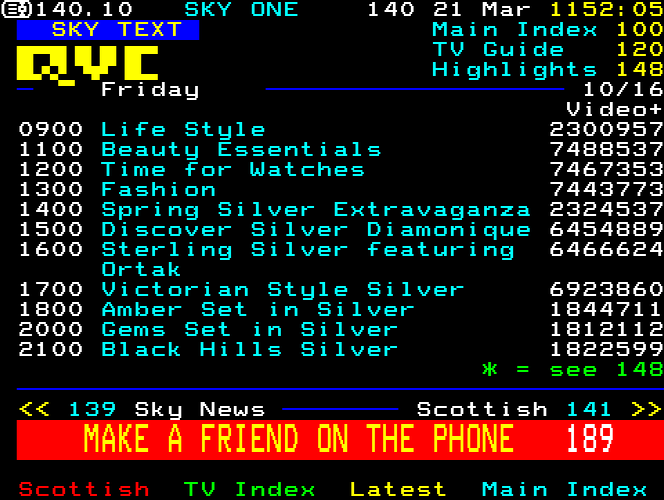 Sky One Teletext pages from 1997
