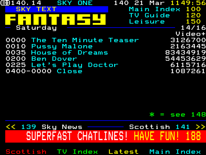 Sky One Teletext pages from 1997