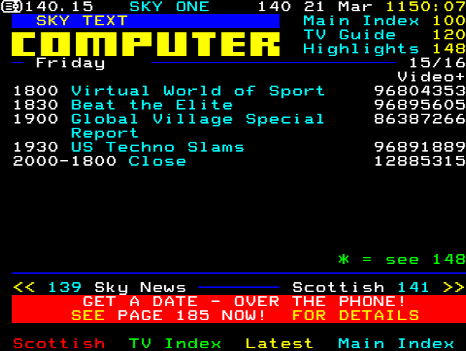 Sky One Teletext pages from 1997