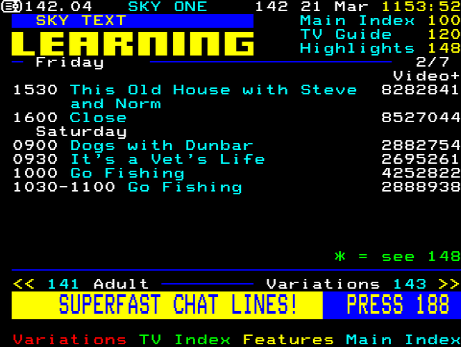 I tried to contact Sky to get permission to use these pages but they don't want to be contacted! I'll wait for them to contact me.