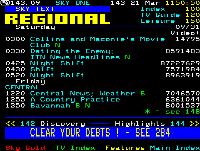I tried to contact Sky to get permission to use these pages but they don't want to be contacted! I'll wait for them to contact me.