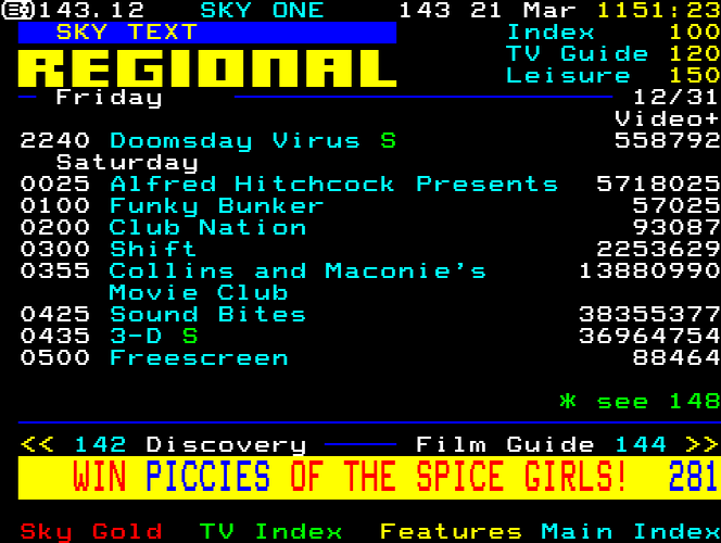 Sky One Teletext pages from 1997