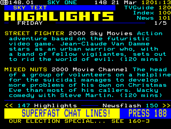 Sky One Teletext pages from 1997