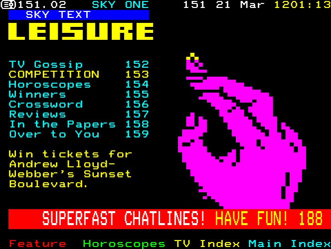 I tried to contact Sky to get permission to use these pages but they don't want to be contacted! I'll wait for them to contact me.