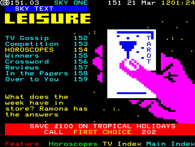 Sky One Teletext pages from 1997