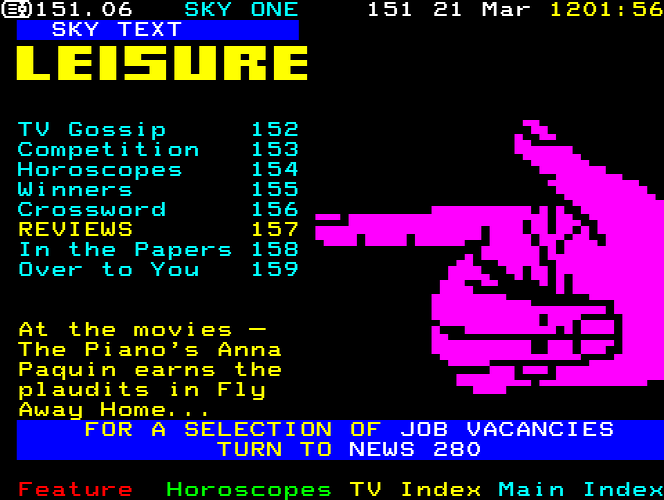 Sky One Teletext pages from 1997