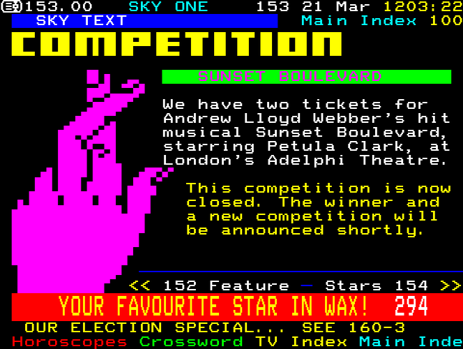 I tried to contact Sky to get permission to use these pages but they don't want to be contacted! I'll wait for them to contact me.