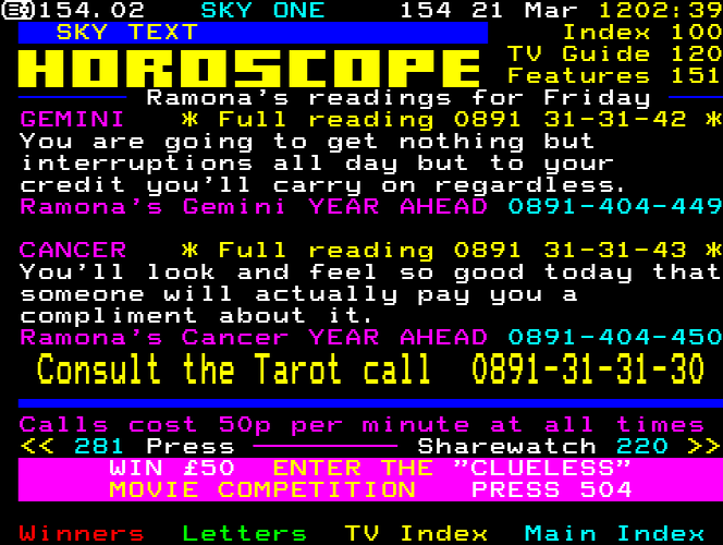 I tried to contact Sky to get permission to use these pages but they don't want to be contacted! I'll wait for them to contact me.