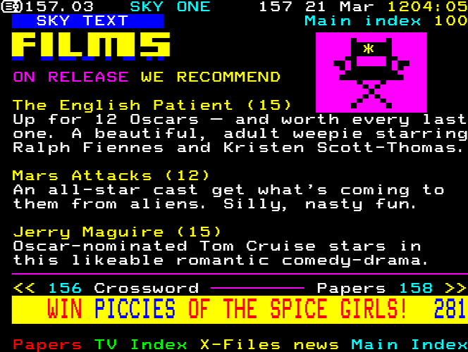 I tried to contact Sky to get permission to use these pages but they don't want to be contacted! I'll wait for them to contact me.