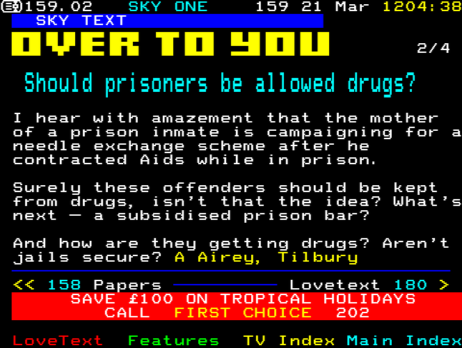 Sky One Teletext pages from 1997