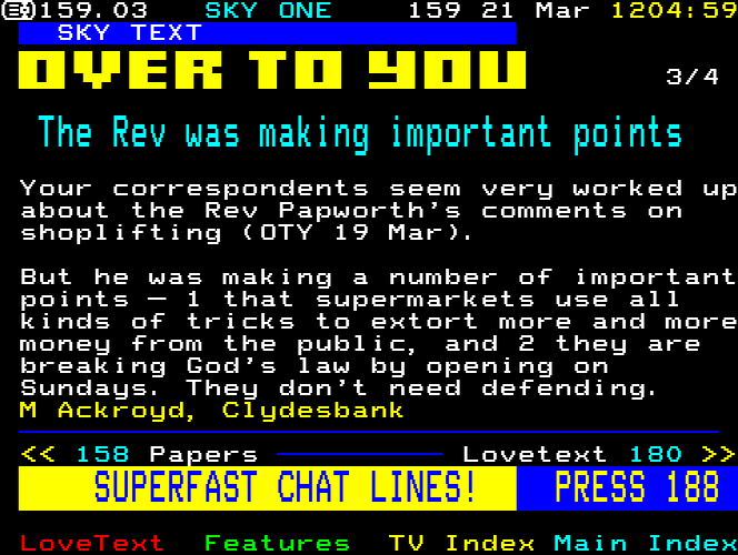 I tried to contact Sky to get permission to use these pages but they don't want to be contacted! I'll wait for them to contact me.
