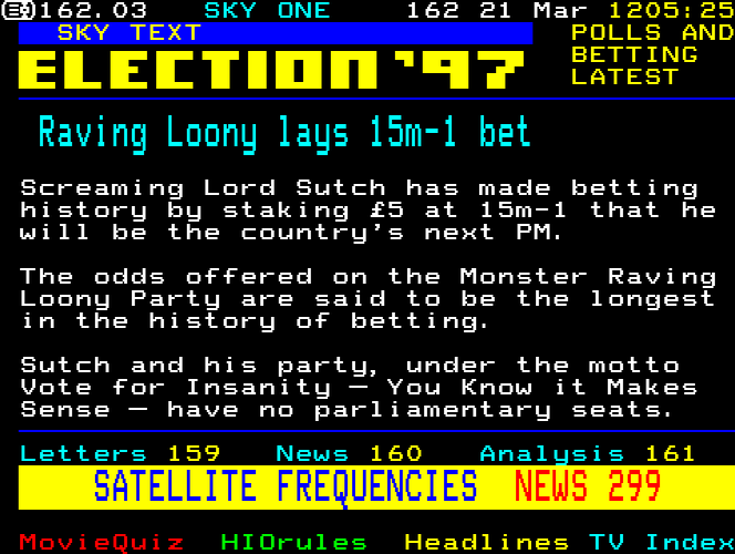 Sky One Teletext pages from 1997