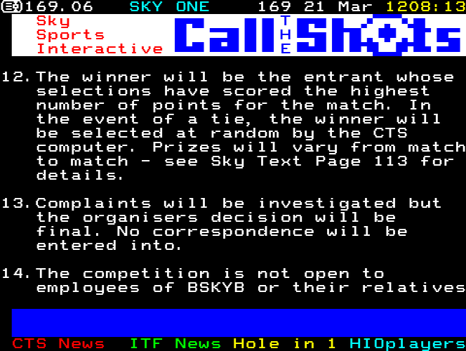I tried to contact Sky to get permission to use these pages but they don't want to be contacted! I'll wait for them to contact me.