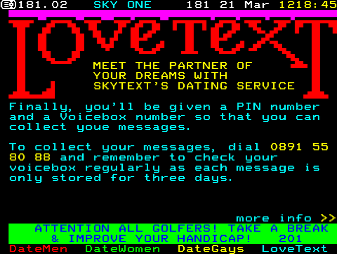 Sky One Teletext pages from 1997