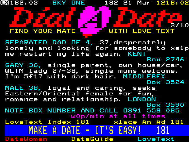 Sky One Teletext pages from 1997