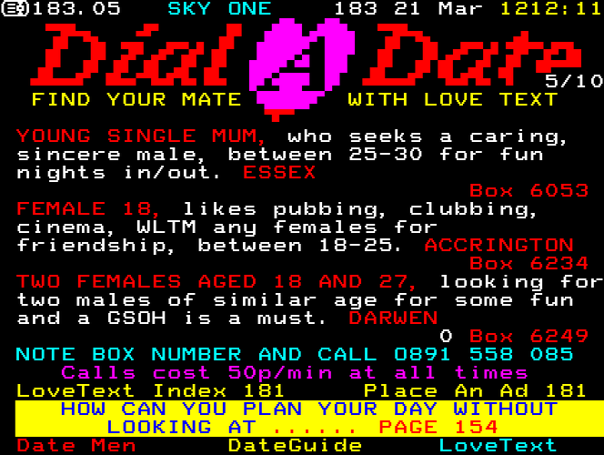 I tried to contact Sky to get permission to use these pages but they don't want to be contacted! I'll wait for them to contact me.