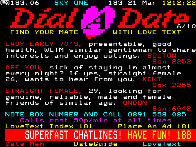 I tried to contact Sky to get permission to use these pages but they don't want to be contacted! I'll wait for them to contact me.