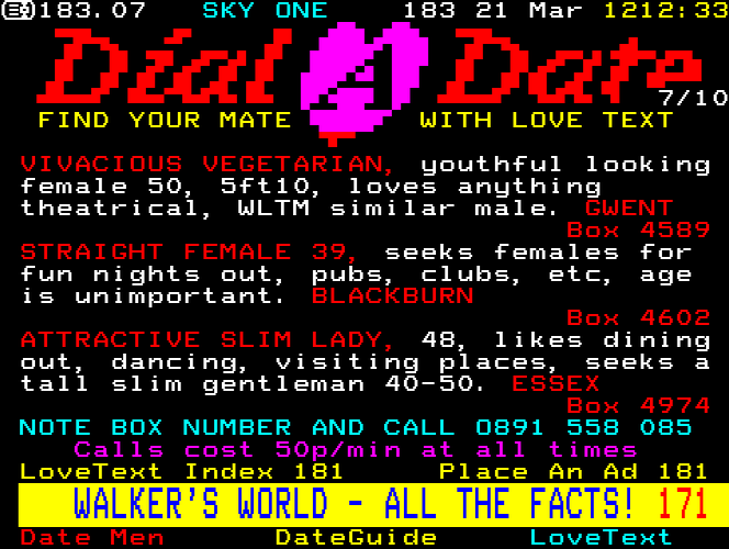Sky One Teletext pages from 1997