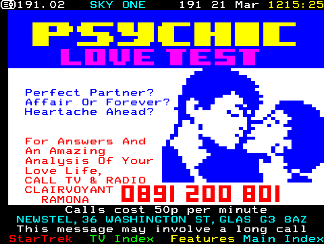 I tried to contact Sky to get permission to use these pages but they don't want to be contacted! I'll wait for them to contact me.