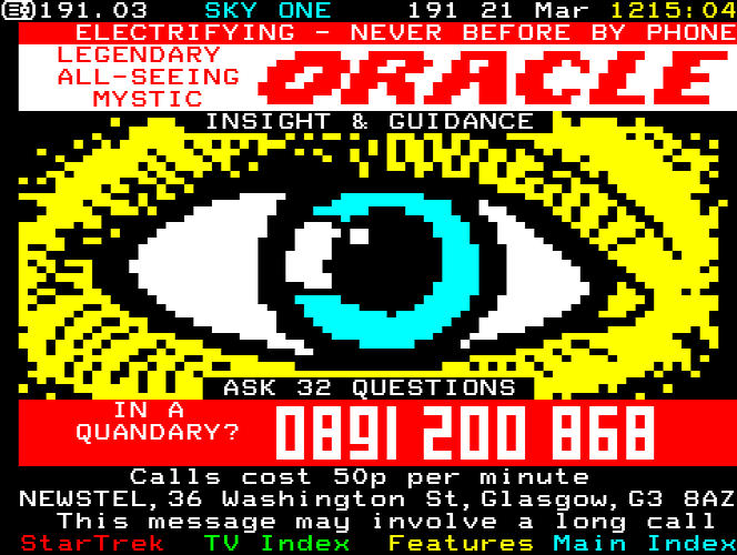 I tried to contact Sky to get permission to use these pages but they don't want to be contacted! I'll wait for them to contact me.